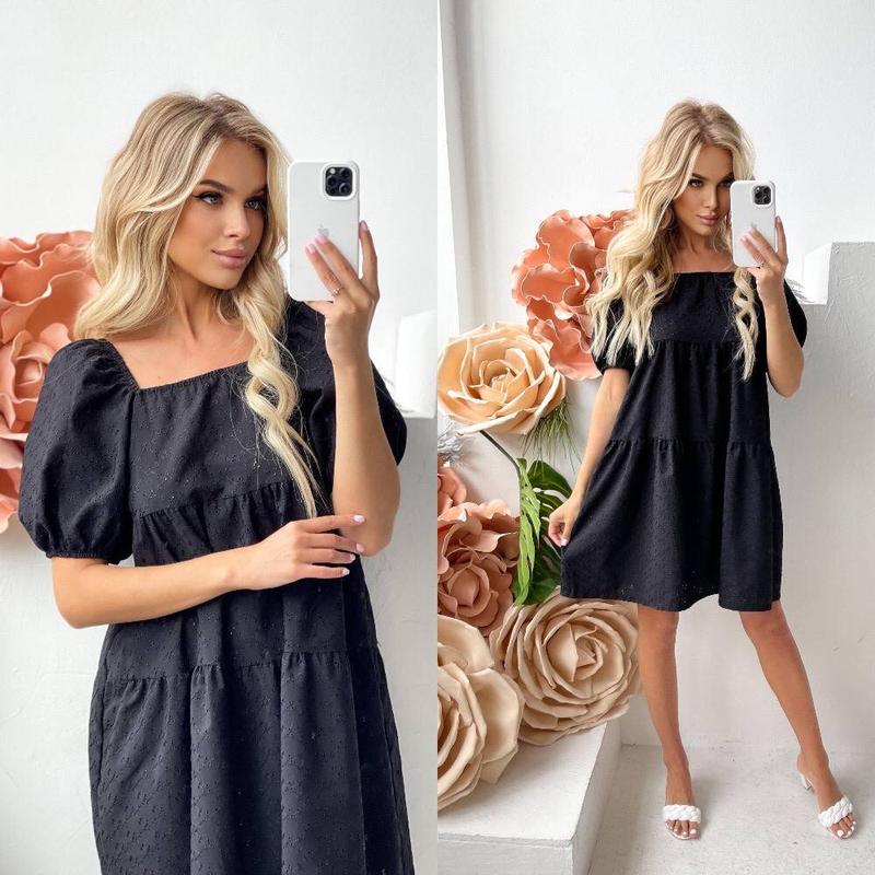 Сукня Мод: 3072СК Розміри: 42 44 46 48 Опис: сукня з натуральної тканини, не парить, дуже легке, на рукавах і по верху гумка Тканина: турецький коттон прошва