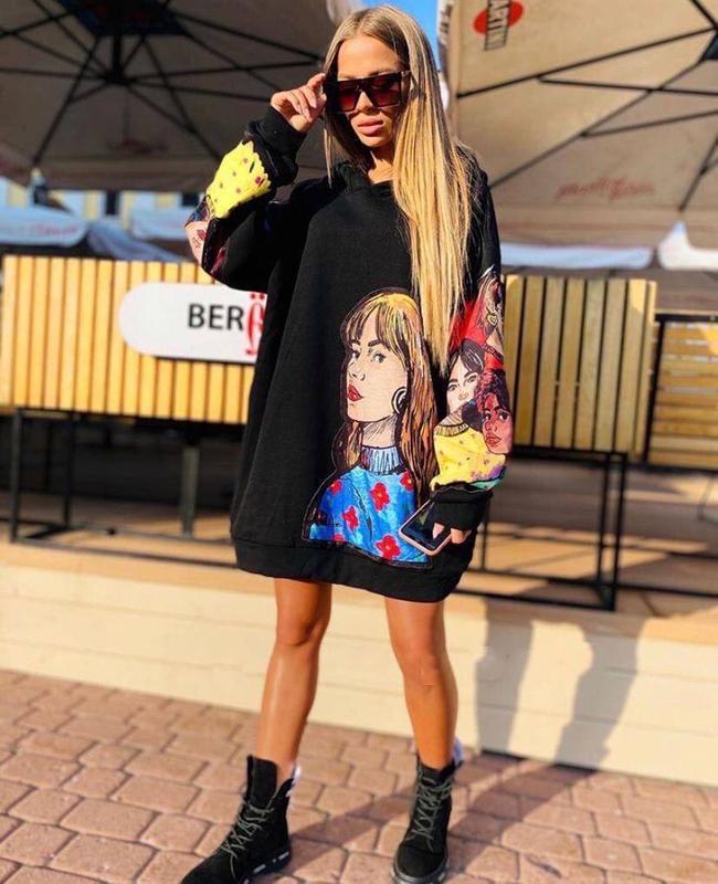Платье - худи з Мод 226(бренда) Размеры: 42-46 Ткань: двухнить Турция Принт сублимация , точно как на фото Качество супер 👍