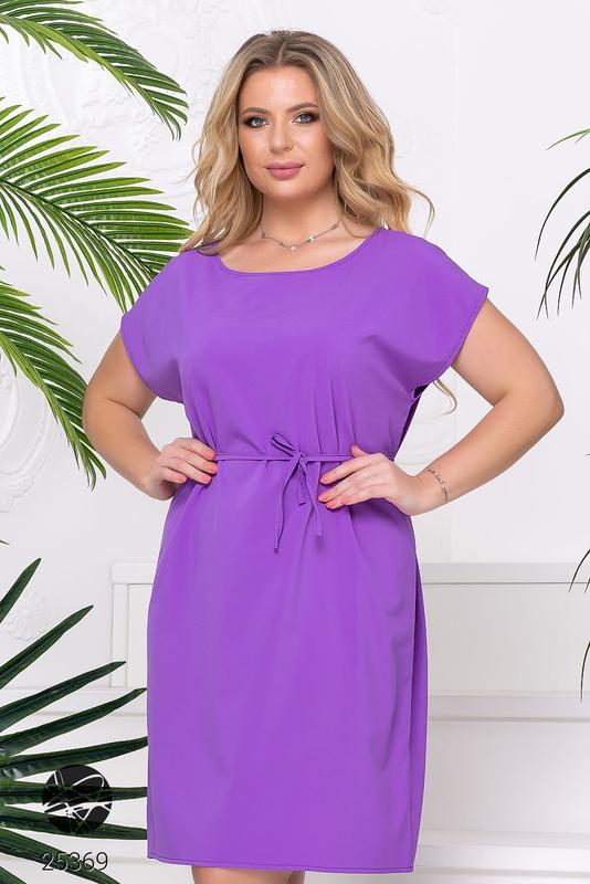 Платье свободного кроя. Овальный вырез, рукава летучая мышь. В комплекте тонкий пояс из основной ткани. Состав ткани: 50% - вискоза, 50% - полиэстер.