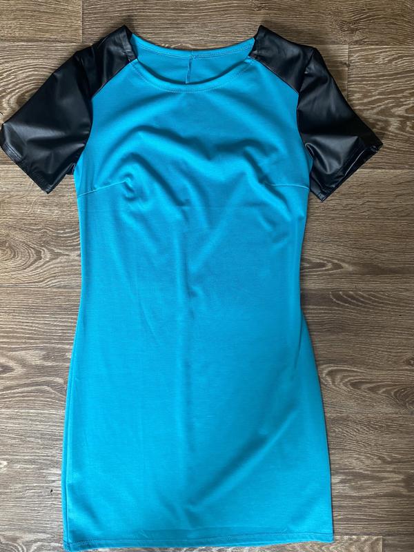 Платье новое, не одевала ни разу, так как маловато. Рукава эко кожа.