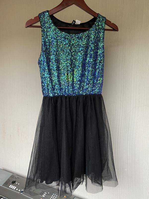 Платье , верх- пайетка синие зелёная, низ 2 слоя фитина и подкладка