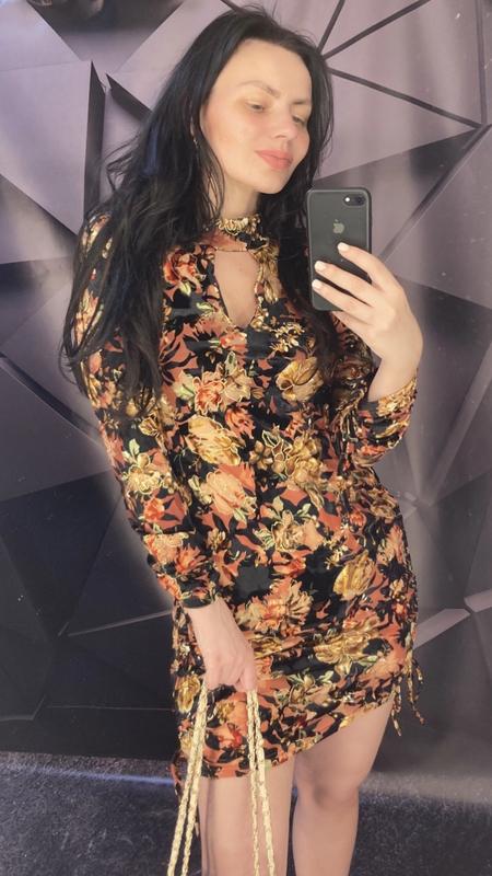 Сукня в квітковий принт НапівОб’єм груди-45,тягнеться до 55 Талія-42,тягнеться до 52 Стегна-48,тягнеться до 58 Довжина на затяжках регулюється від 70 до 95 Рукав регулюється на затяжках