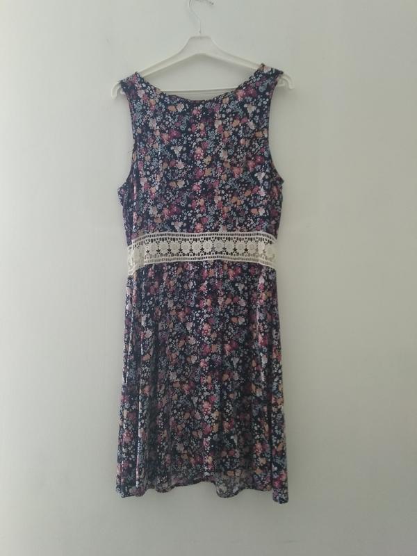 жіноче літнє плаття в квіточки з мереживом,по спинці замочок. коттон,еластанситець.без бірок довжина 87см в грудях 38см реальний колір 2фото