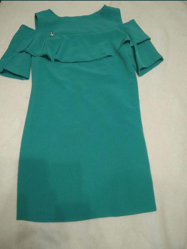 Плаття бірюзового кольору,дуже гарне, довжина 87,пог 46,пот 43,поб 49, тягнеться,рукав 22. Додаткові заміри та фото зроблю. Запитуйте.