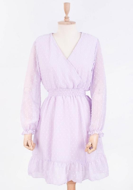 Жіноче лілове плаття Розмірний ряд: Норма Матеріал: Поліестер Сезон: Весна/осінь Вид застібки: Без застібки Еластичність: Немає Країна виробник: Китай Розмір 48: плечі 39 см, напівобхват грудей 43 см, довжина рукава 55 см, напівобхват пояса 21 см, напівобхват стегон 61 см, довжина виробу 88 див. Ціна:330