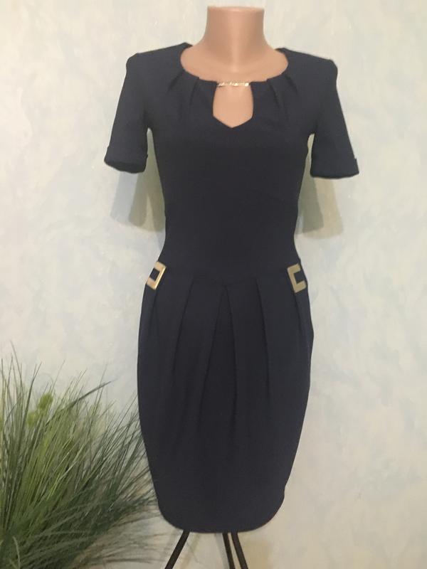 Класное плаття до коліна , дуже добре сидить на фігурі, тканина щільна, тянетса , розмір s. ,довжина 90 ,на кишенях декор ,смотритса стильно.