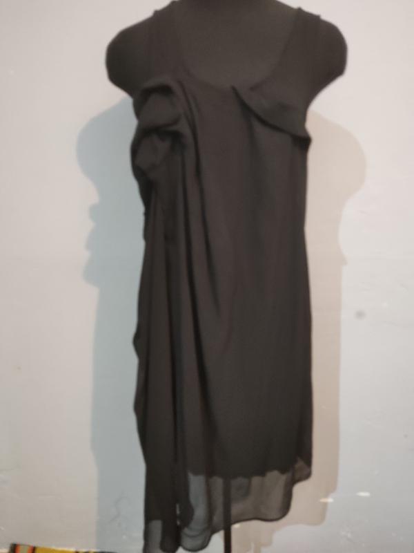 гарне плаття на трикотажній основі з шифоновою накидкою,з драпіруванням на грудях,крій вільний, прекрасно сидить. ррМ,може й З і на Л. виміри: длина100/87,пог47,піт,побіди вільно