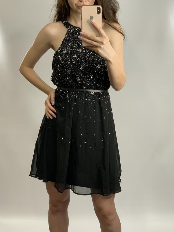 Шифонове плаття на підкладці в каменях і намистинками. Можна носити з пояском. Шикарне переливається, камера не передає всієї краси, новий з біркою, до сукні йде пакетик з намистинками, ціна на бирці 65 євро. Розмір 12 ( м )