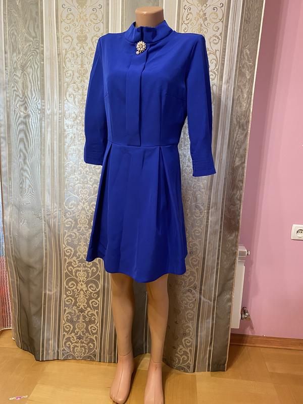 Плаття кольору «електрик-синій» Рукав 3/4 Довжина 85 см Пів обхват талії 38 см Має гарну брошку Комірець - стієчка