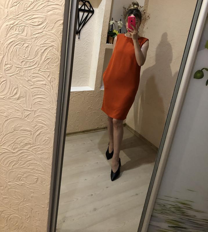 Стильне плаття рівного крою. Яскраво помаранчевий колір Оголена спинка . Є кишені. На підкладці . Нове від бренду Mango є невелика зачіпка ззаду , при носінні не видно. Останнє фото Заміри Довжина-89 П. о. р-46 П. о. б-46