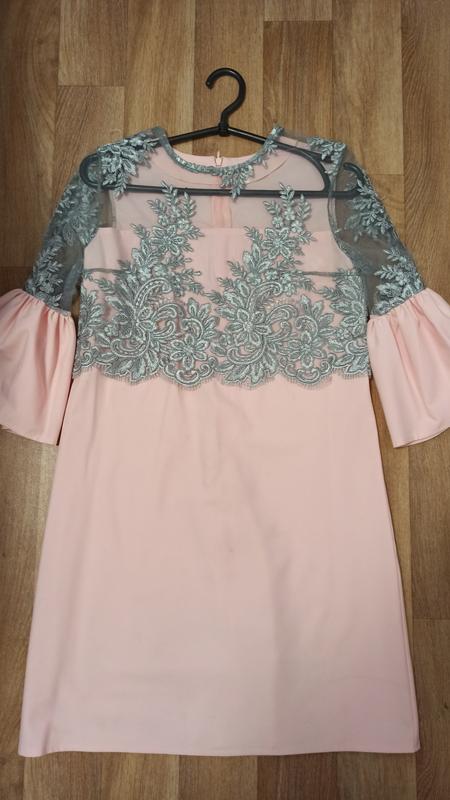 Святкова ажурна сукня ніжно-рожевого кольору з сірим мереживом. стан відмінний. розмір s.