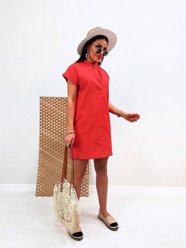 Женское льняное платье летнее Материал: лен Замеры: длина по спинке: 82-84 см, длина рукава от горловины: 25-26 см Цвета: хаки, капучино, красный ___________________________