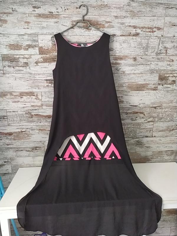 Оригінальне плаття.Нижня яскраве,короткий,верхнє чорне,довге. Довжина короткого 80 Довжина довгого 129 Ширина(від пахви до пахви 47