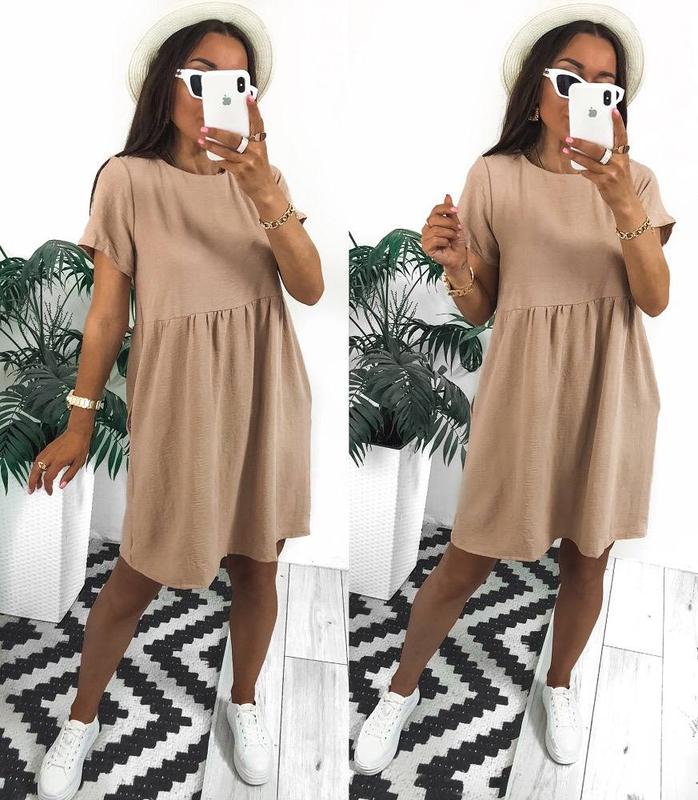 Плаття літнє Мод 3077СК Розміри: 1(42-44) 2(46-48) Опис: короткий рукав, трохи тягнеться Тканина: американський креп