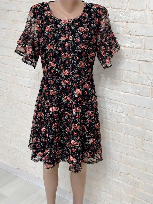Сукня в квітковий принт. Верх мереживо відмінної якості. Тканина тягнеться. Розмір вказаний М . Довжина-90см ПОГ-49см ПІТ-41СМ