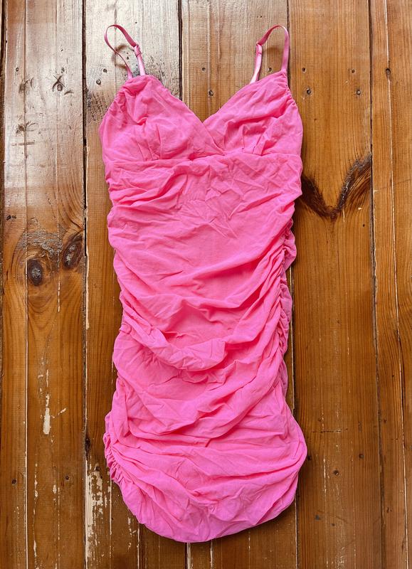Летнее красивое розовое платье, скрывающее зрительно недостатки фигуры. С V-образным вырезом и регулируемыми бретелями Размер 34-36 Состояние идеальное