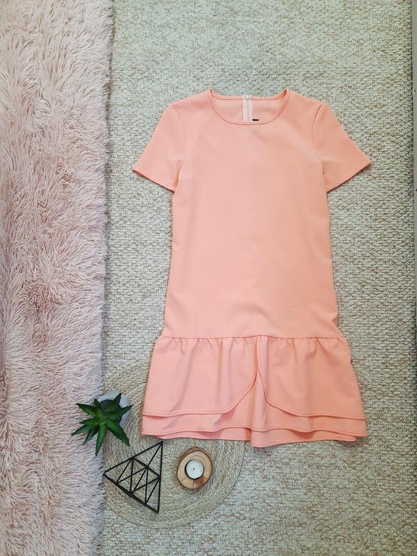 🦋 Персикова вільна сукня 🦋 Ідеальний стан 👍 Баска в районі бедер. Матеріал приємний на дотик 🤗 🌸 Склад: 100% поліестер. 🌸 Розмір 34(XS/S). Заміри: 🌼 плечі - 37см; 🌼 пог - 45см; 🌼 поб - 48см; 🌼 довжина від плеча - 81см.