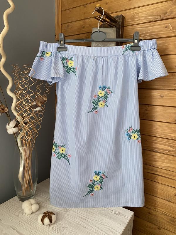 Легке, котоновое сукні з вишивкою, з опущеним плічками від New look, рр uk 8, eu 36, usa 4, ... склад: 100%котон, довжина 69, ПО грудях 47, вільний, упоряд як нове