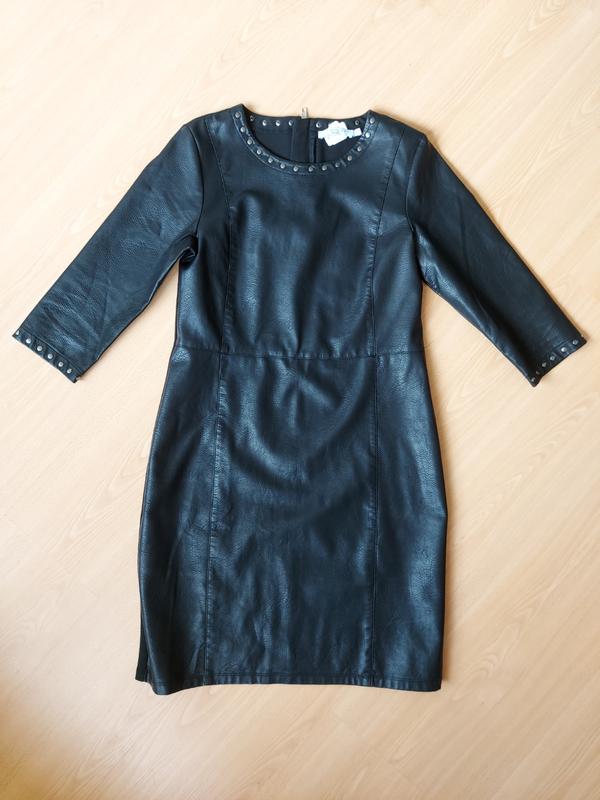 Оригінальне чорне міні сукня. COSTES Натуральна віскоза, комбінована з яких елементів - рукави і передня частина виробу. Блискавка ззаду. По краях рукави і виріз декоровані кнопками. Якісний пошиття, щільна тканина, плаття досить тепле, підійде на демисезон. Заміри: Плечі 35 Рукав від.шва 41 ПОГрудь 44-45 ПОТалия 41 ПОБедра 49 Довжина 81/89, спідниця 50 Замок 17 див. Склад (перед) 55% поліестер, 45% віскоза Складу (зад) 65% віскоза 30% поліестер, 5% спандекс