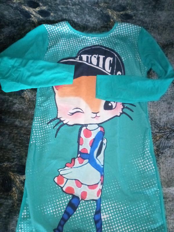 Можна на дівчину підлітка, принт веселий, яскравий не поміченим плаття не буде.Стан добрий.Колір світла бірюза, вище колін.