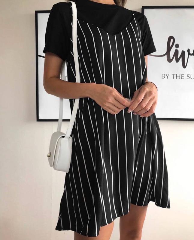 Basic dress Повітряне літнє плаття в смужку на складі Мод.420Г Розміри: 42-44; 44-46 Тканина: софт, принт як на фото Кольори: білий і чорний