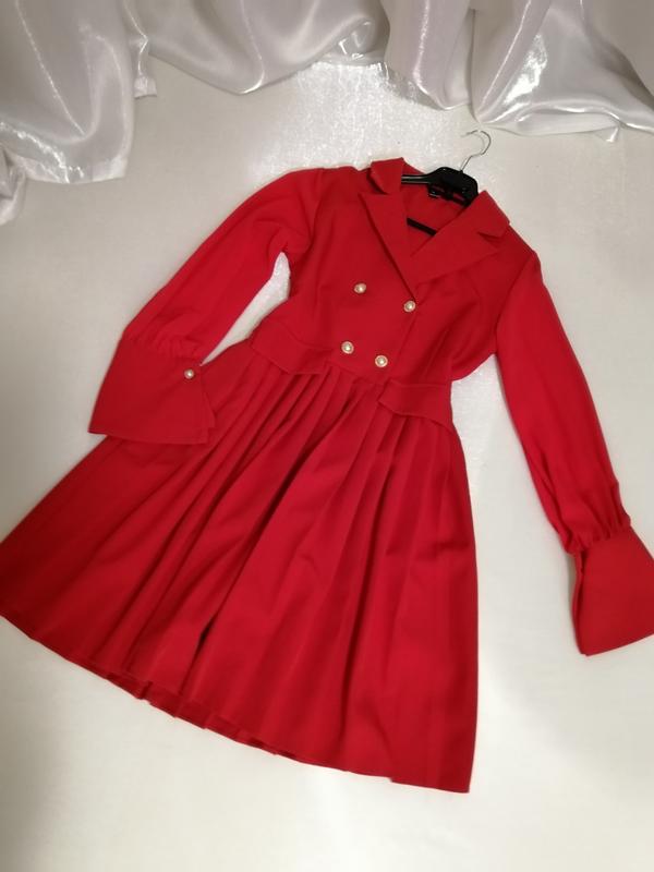 Красивое платье пиджак отрезная юбка плисе полупрозрачный пышный рукав шифон с манжетом фонарик , красивая фурнитура пуговки под жемчуг в золотой оправе с плетением , застёгивается на скрытый замок сбоку , размер на бирке L пог 47 см+ выточки пот 42 см поб без ограничений длина по спинке 93 см .Бирок с составом ткани нет