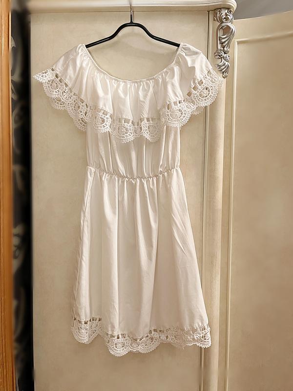 Дуже гарна біла сукня, Розмір М. Підійде і на S , і на L, так як немає застібки, а тільки резинка. Нова