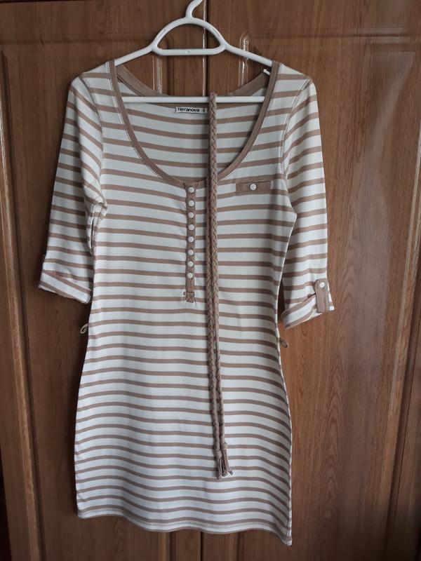 Мягенькое трикотажну сукню під поясок.Довжина сукні 82см.Довжина рукава в подвернутом вигляді 38см,в розгорнутому 45см.