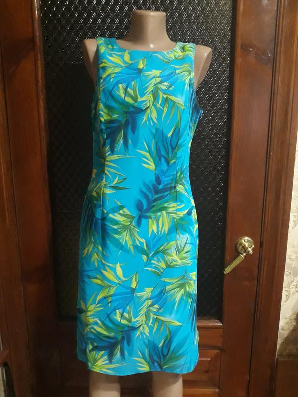 Красивое летнее платье по фигуре. Сбоку длинная застёжка молния. Ткань верха вискоза 100% лёгкая и просвечивающаяся. Подкладка из полиэстера. Замеры: полуобхват груди 46 см. полуобхват талии 40 см. полуобхват бёдер 48 см. Длина платья 94 см.