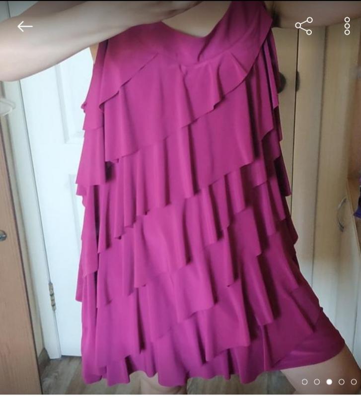 Нарядное платье туника. Многослойная рюшами скривает все недостатки фигури.Красивейший цвет цикломена. Ткань трикотаж масло. Размер 26 батал.