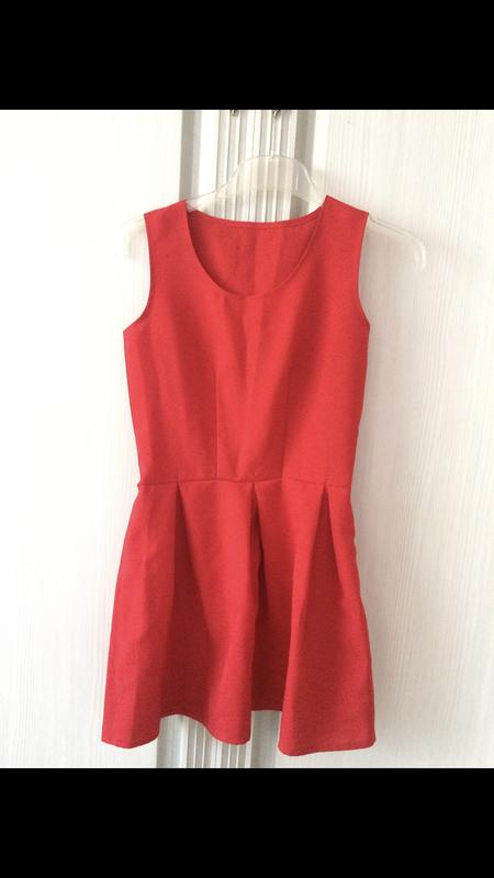 Сукня червоного кольору Розмір на бірці Xs/S Додаткові заміри: Плечі ширина 32 Підлогу обх.груді-42 Підлогу.обх.таліі-34 Довжина 80см, довжина від талії 40см Заміри зняті в НЕ розтягнутому стані