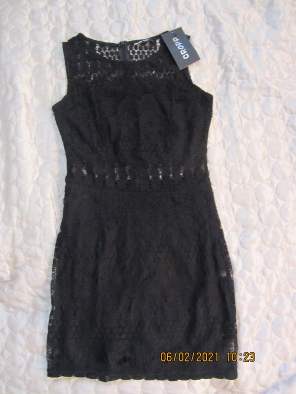Плаття з мережива Cropp чорного кольору. Спідниця має підкладку. Дві теж має підкладку. Пояс і спинка прозорі. Застібається взаді на блискавку. ОГ 37см. ВІД 33см. ПРО 39див. Довжина 80см.