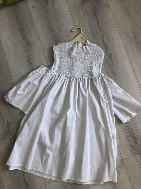 Літній,бавовняне, біле плаття з гарним декором на грудях. Довжина 81см. Розмір універсальний