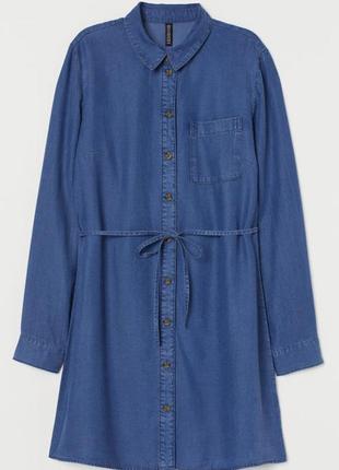 Короткое платье из мягкого денима из Tencel™-лиоцелла. Модель с отложным воротничком, пуговицами спереди и кокеткой сзади. Узкий съемный пояс на талии. Длинные рукава с манжетами на пуговицах. Без подкладки. СоставЛиоцелл 100% Арт. №**********