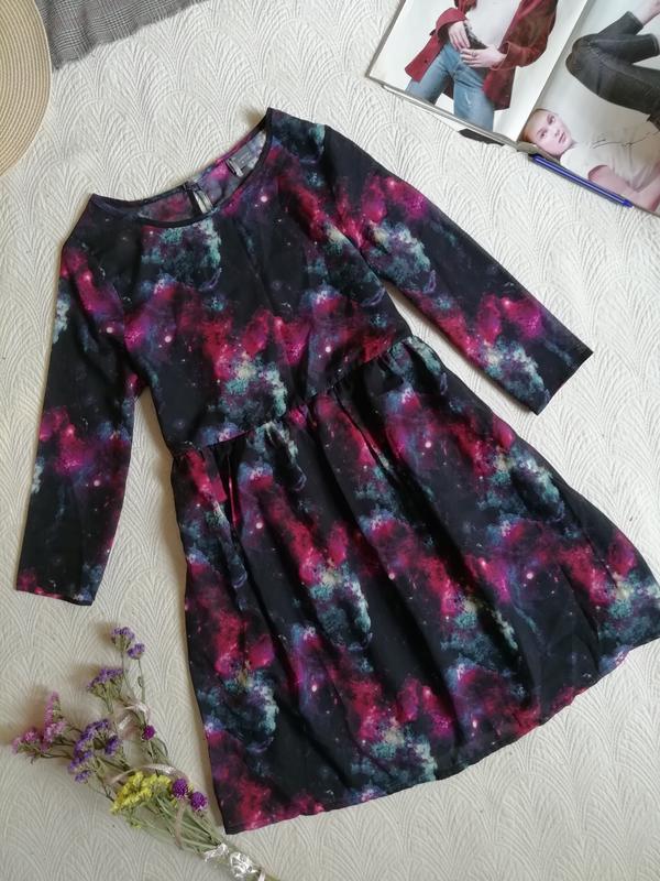 Красивое платье. Размер указан X/S. Возможно подойдет и на S. Ориентируйтесь на замеры. Длина платья 82см. Полуобхват груди 42см. Полуобхват талии 37см Бедра свободные. Длина рукава от плеча 43см Плечи 36см. Ткань не тянется. Есть подкладка. Состав 100 %полиэстер. Состояние идеальное. Следов носки нет.