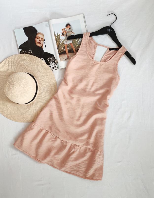 легке плаття від Mango на широких брителях з рюшею, тканина віскоза,в двох розмірах, розмір М, ПО грудей 47 см, довжина 87 см, розмір XS ПО грудей 43см, довжина 86 см