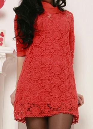 Сукня коралова з мережива