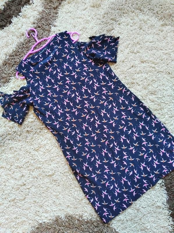 Платье с открытыми плечами, размер XS, но подойдет также на S,M. ( рост модели на фото 168 см)