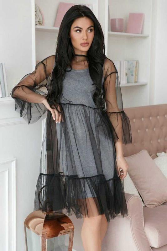 платье - двойка мод.7843 ткань : трикотаж с люрексом , евросетка размеры : с , м. цвета : черный , серебро Длина нижнего платья 82см.