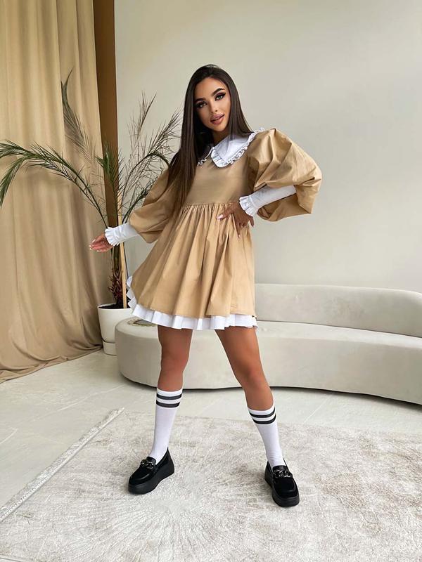 Бавовняне плаття вільного крою з об'ємними рукавами і зі знімним комірцем Розмір: ONE-SIZE S/M Тканина: бавовна