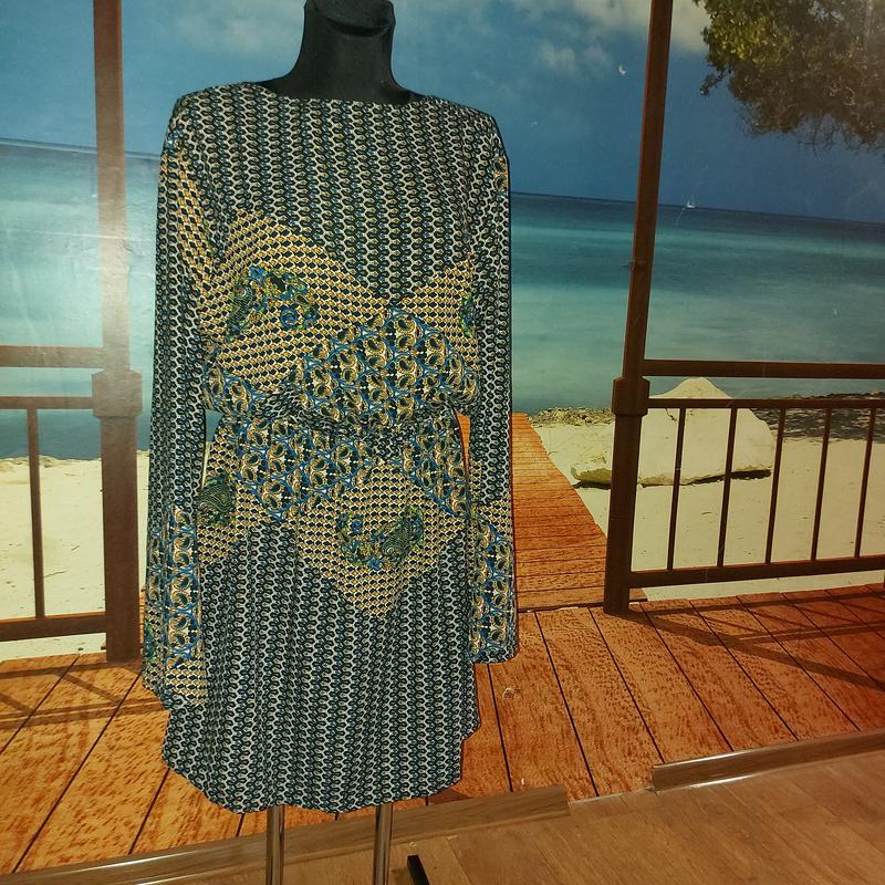 талія на гумці,ззаду зав'язки.Одягнене на манекен розміру М.