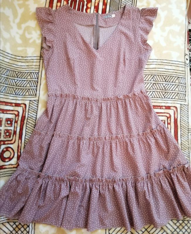 Плаття літнє, розмір 44-46, колір темно-рожевий в горошок, на спині "блискавка". Дуже стильне і легке. Стан нового. Є дефект - маленька пляма на спині від праски, видно на фото 3. Довжина 90 см, ПОГ 50 см, ПОТ 40 см, в бедрах вільно.