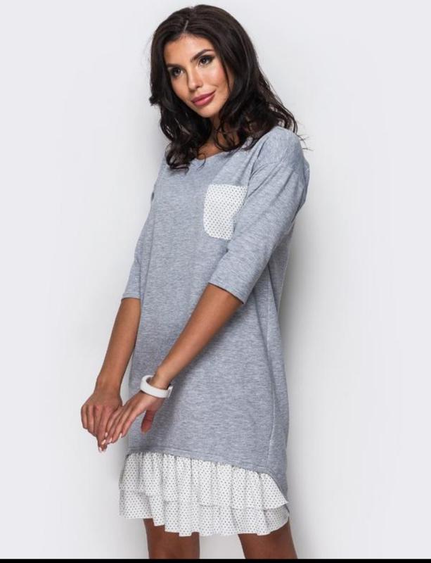 Практичное платье из приятной к телу ткани. Изюминка модели - двухярусная сборка из ширина на полочке. Размер М. (наш 44)