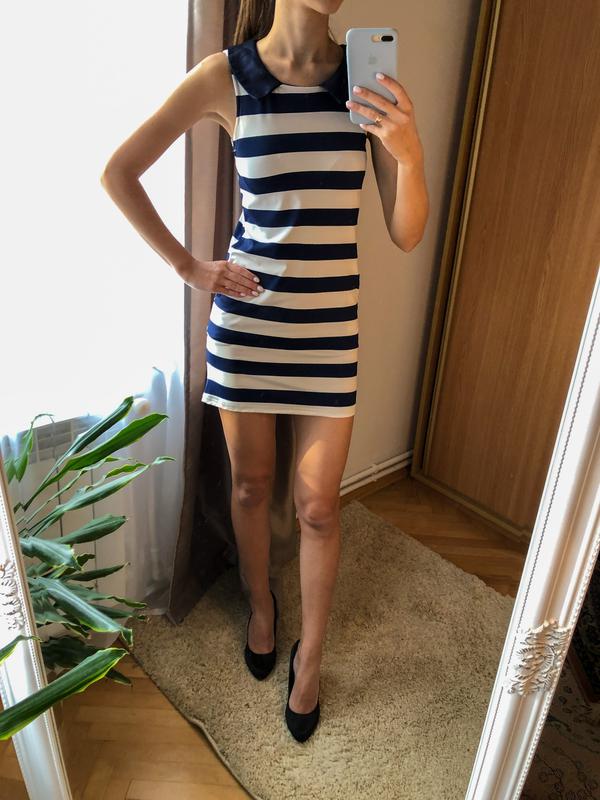 Плаття сарафан на літо 34/36 смужка синьо біла короткий рукав
