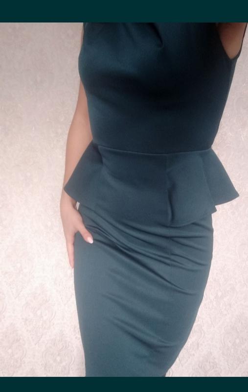 Гарненьке платтячко,насиченого бутилочного кольору.Баска додає елегантності,підкреслює лінію талії.Тканина плотна,гарно стягує.Одягнене один раз на забаву,зараз трошки затісне,підійде на 42-44,в залежності хто як любить,щоб обтягувало.