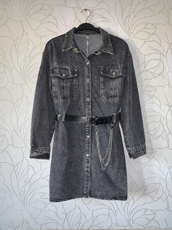 Стильне плаття-сорочка. Прямий крій. В комплекті пояс. Можна носити у відкритому вигляді. Дівчина з ростом до 170 см може носити, як сукня.