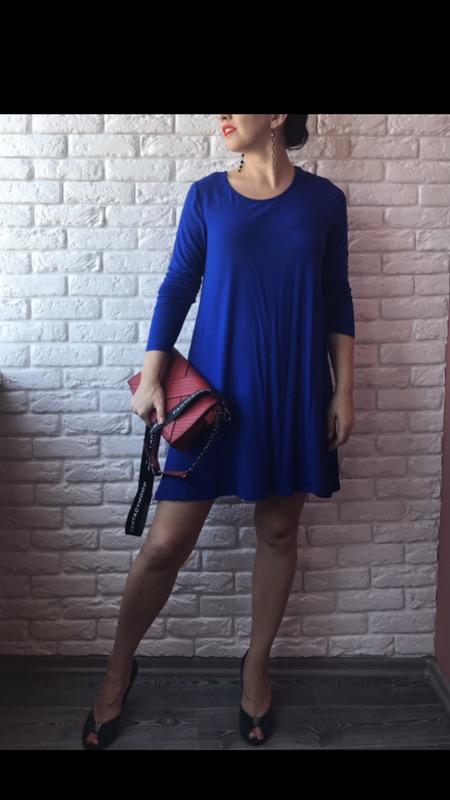 М'яке блакитне плаття з довгими рукавами На бирці 🏷 вказано розмір 2XL, але плаття можна носити на різний розмір ( починаючи з S-ки, як на манекені. Або як на дівчині на фото ( М-ка) )