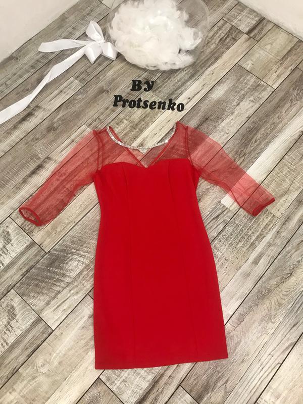 Сукня жіноча червона З сіткою і камінцями Один маленький недолік