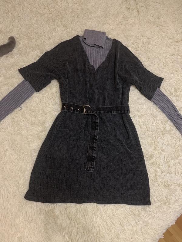 Сірого кольору сукня туніка . Під гольф взимку восени Можна і без Приємна на дотик тканина .