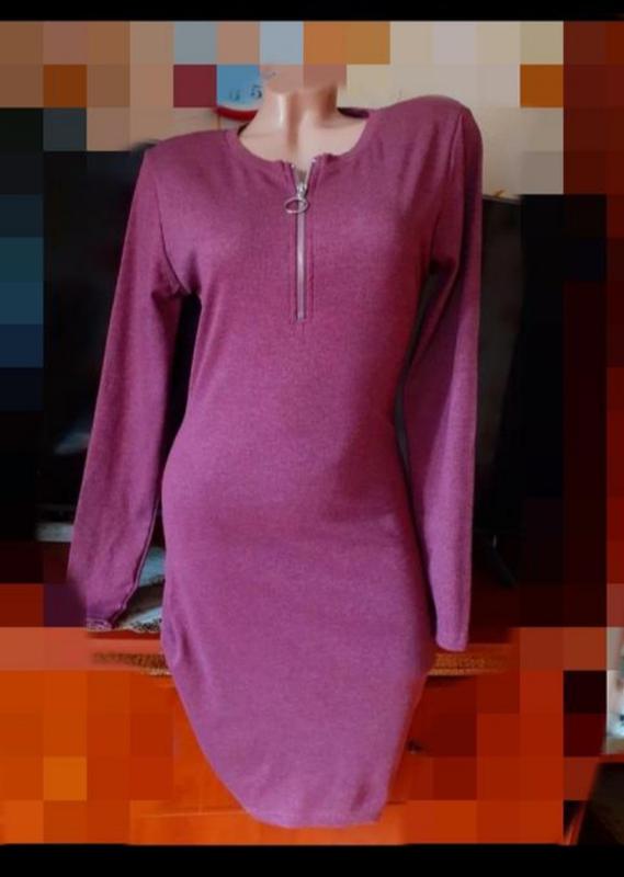 сукня трикотажна в'язка оздоблення блискавка рукавчик на манжеті по фігурі колір ближче до бордо